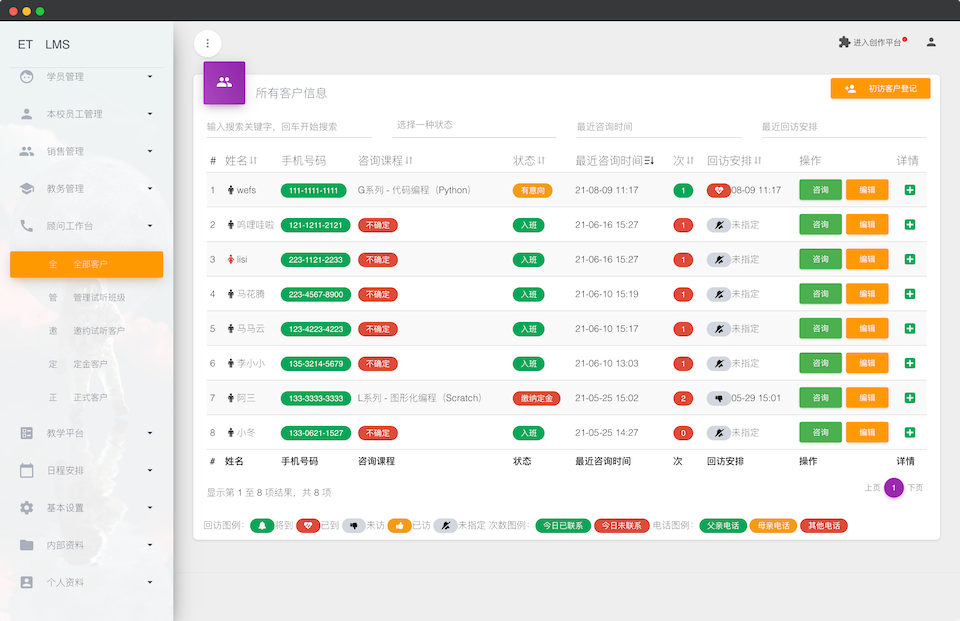 “好学好教”教学管理系统将客户关系管理、学生管理、人员管理、分支机构管理、教研活动、教学活动和教务管理等集成到一个平台,方便教育机构对教学活动的统一管理。